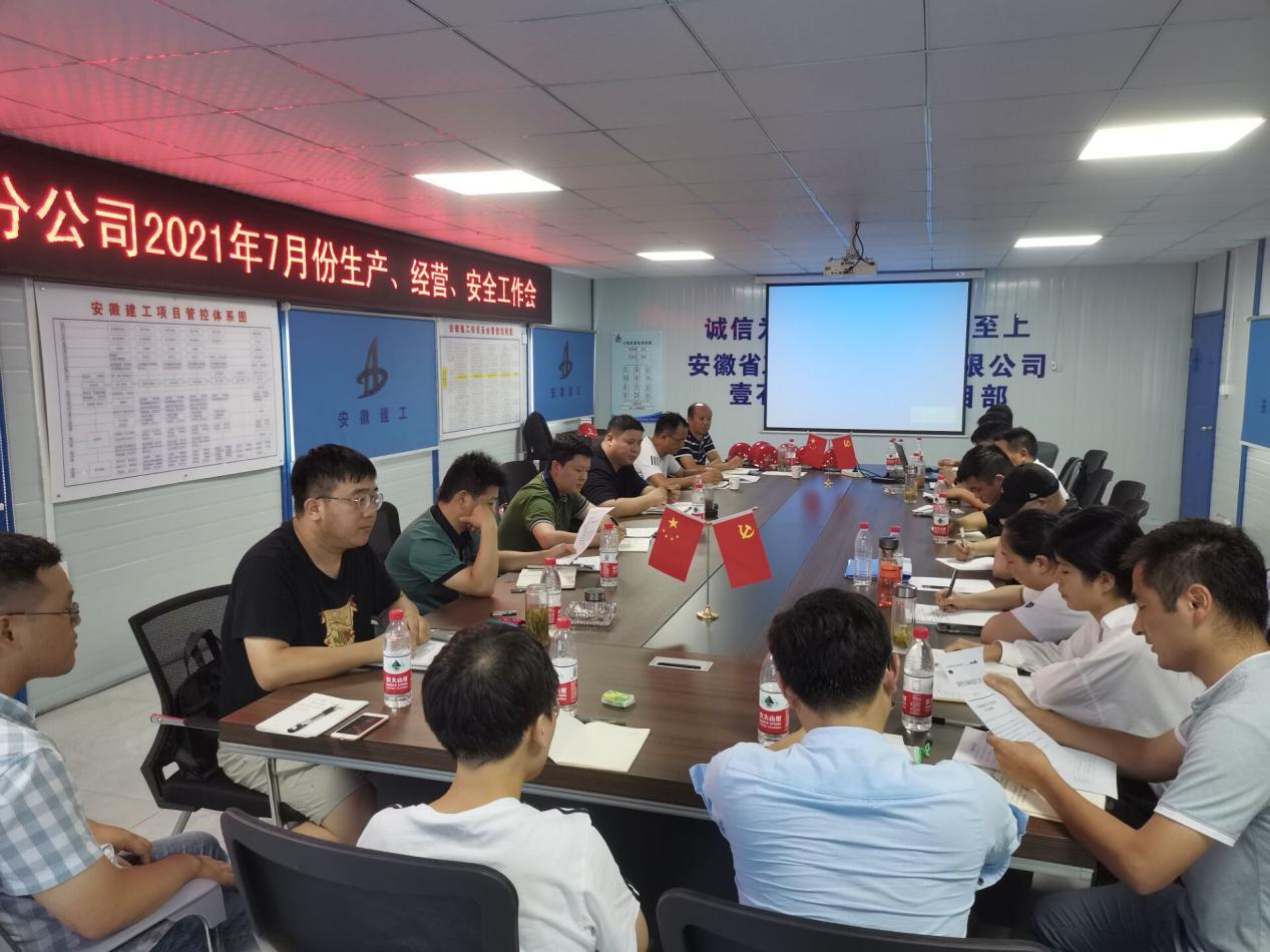 7月31日,房建(裝飾)分公司在定遠(yuǎn)壹石通化學(xué)科技廠(chǎng)房項(xiàng)目部召開(kāi)7月生產(chǎn)、安全、經(jīng)營(yíng)工作會(huì)議,分公司領(lǐng)導(dǎo)班子成員、所屬各項(xiàng)目班子成員、分公司機(jī)關(guān)各部門(mén)負(fù)責(zé)人以及工程部全體成員參加會(huì)議,會(huì)議由分公司副經(jīng)理徐明東主持。